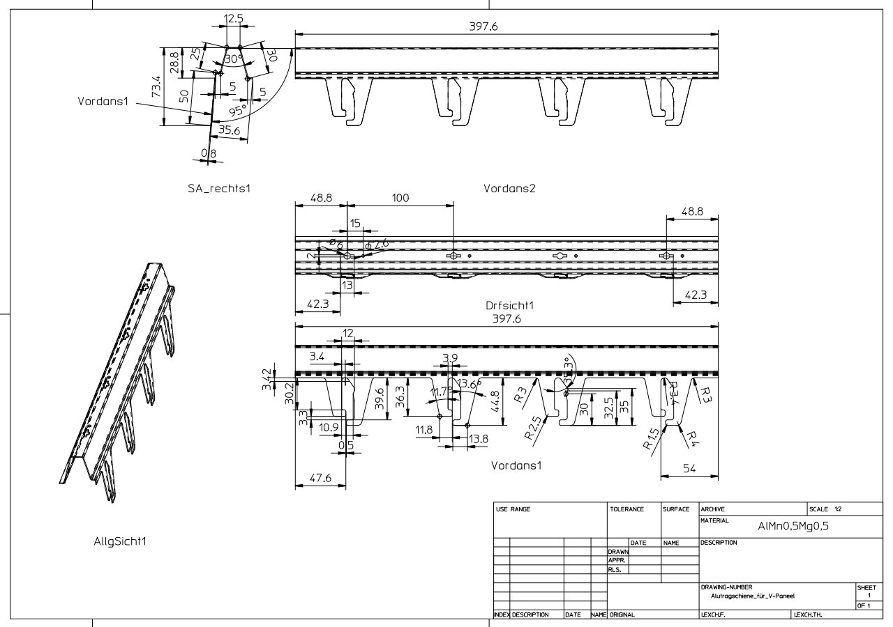 Tragschiene für die superleichten ORIGINAL DOBNER Aluminium-Vertikal-Lamellendecken